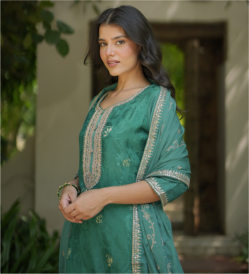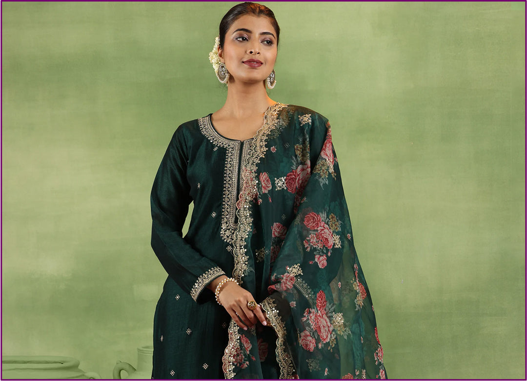 Chandni Olive Embroidered Georgette A-L...